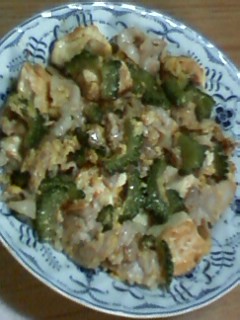 我ながら中々よろしい出来映えであります。(実はゴーヤの料理はこれしか知らんねん^^;)
