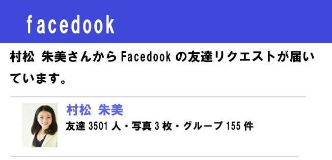 「Facedookの友達リクエストが届いています。」
