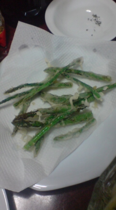 「山椒の実」、「きぬさや」、「そら豆」、「アスパラガス」、「ニンニク」、「ニンニクの芽」、「アイスプラント」、「玉ねぎ」などですが、やっぱり『天ぷら』は絶品です!