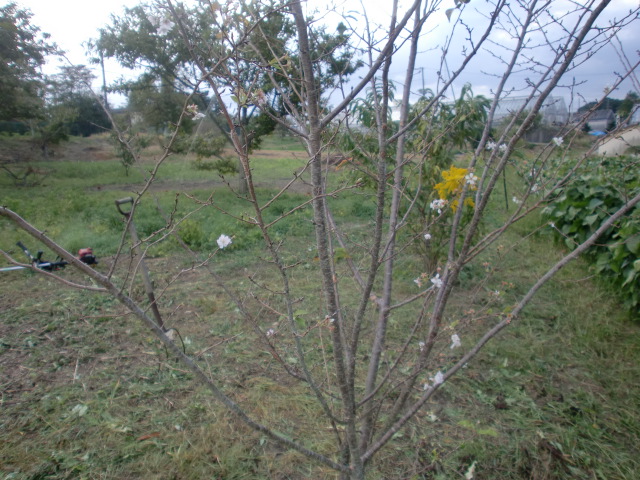 春と勘違い(春より暑い気がするが…)しよったか?なんと、なんと、桜が咲いた!狂い咲きや!