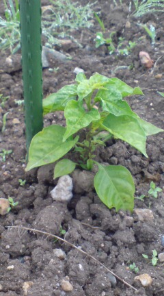 左より『アイスプラント』、『ハバネロ』、『ジャガイモ』、『パプリカ』(草が…)です。