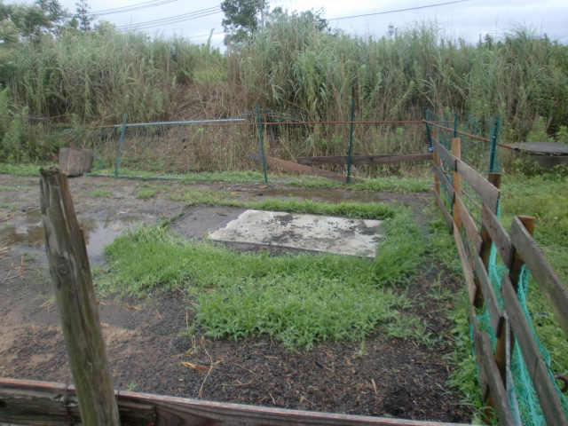 相当頑丈な鉄筋杭で固定してたんで2、3年は大丈夫やろ、それまでにもっと立派なヤギ舎を作ったるでー!と思てたんですが、1年ももたんとは…(ショボ~ン)