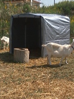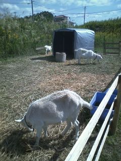 去年10月に設置した仮のヤギ舎(サイクルハウス)が跡形も無く吹き飛ばされて消え失せ、そこらへんには見当たらんそうです。