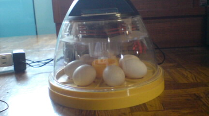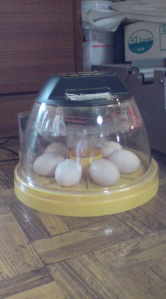 孵卵器『ミニアドバンス』に烏骨鶏の卵を7個セットしました。