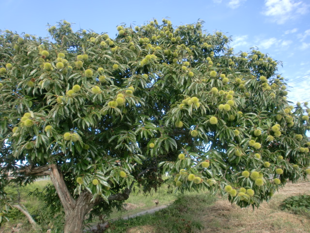栗の木の枝を2、3本ちょちょいと揺すって収穫7Kg強、この分やったら1本で軽~く10Kgアップ、栗の木は全部で8本あるんで、少なく見積もっても100Kgはあるんやなかろうか?(げっ!)